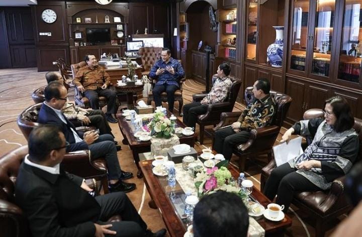 “Bersama Mas Wakil Menteri (Wamen) Raja Juli Antoni dan jajaran Kementerian ATR/BPN, kami senang bisa bersilaturahmi dan berdiskusi membahas sejumlah isu dan substansi bersama yang Mulia Ketua Mahkamah Agung Prof. Dr. H. Muhammad Syarifuddin, beserta jajaran,” ujar Menteri AHY.