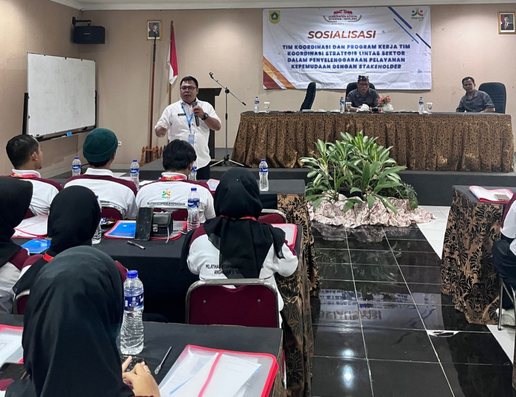 Dalam kegiatan sosialiasi itu dipimpin langsung oleh Kepala Dinas Pemuda dan Olahraga (Kepala Dispora) Kabupaten Bogor, Asnan AP didampingi oleh Kepala Bidang (Kabid) Pelayanan Kepemudaan, Abdul Karim, dan para katim pada Bidang Layanan Kepemudaan yaitu Joko Widodo selaku katim Infrastruktur dan Kemitraan Pemuda, Acep Hasbullah selaku Katim Pengembangan Pemuda, dan Laili Fikriyah katim Pemberdayaan Pemuda.
