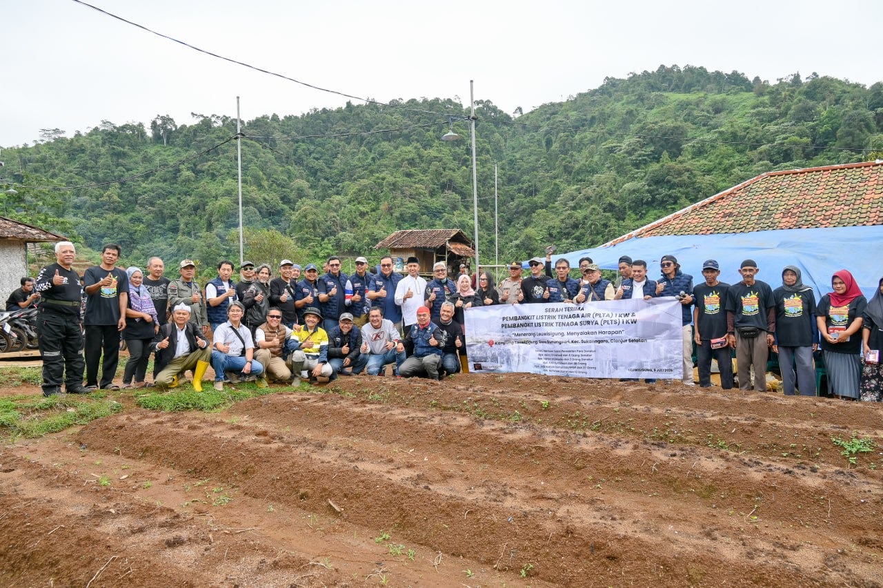 Cianjur – Rabu, 9 Juli 2025 menjadi momentum penting bagi Kampung Leuwisigung, Desa Gunungsari, Kecamatan Sukanagara, Cianjur Selatan. Dalam program kemanusiaan bertajuk “Menerangi Leuwisigung, Menyalakan Harapan”, warga secara resmi menerima bantuan pembangkit listrik tenaga mikrohidro (PLTMH) dan tenaga surya (PLTS), masing-masing berkapasitas 1 kW.