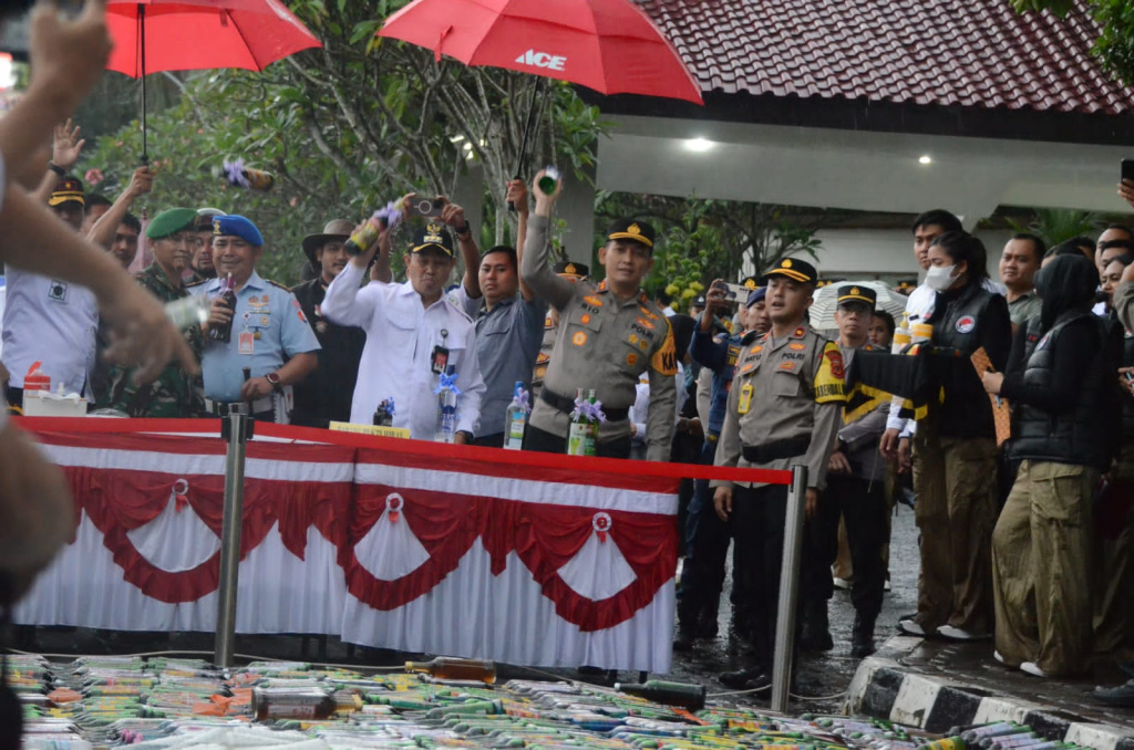 “Dengan pemusnahan ini membuktikan bahwa kami terus melakukan upaya-upaya agar masyarakat bisa tenang dalam menjalankan ibadah selama bulan suci Ramadhan. Kami juga tidak akan berhenti untuk memburu pelaku penjual miras dan obat-obatan terlarang,” imbaunya sembari mengingatkan.
