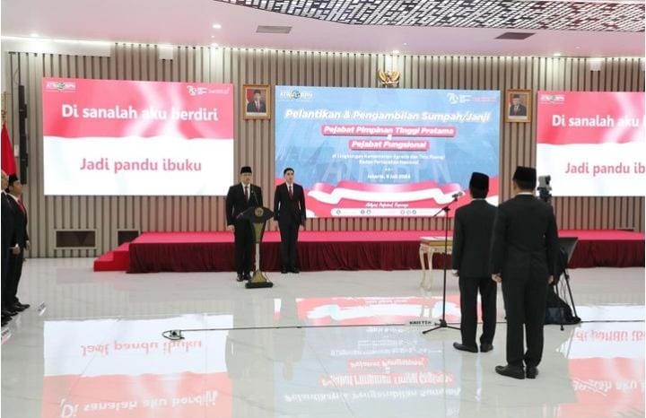 RAKYATJAYA.COM – Menteri ATR/BPN RI, Agus Harimurti Yudhoyono melantik 21 pejabat pimpinan tinggi Pratama dan 8 Pejabat Fungsional di lingkup Kementerian ATR/BPN Republik Indonesia, pada Selasa (09/7/2024) kemarin.