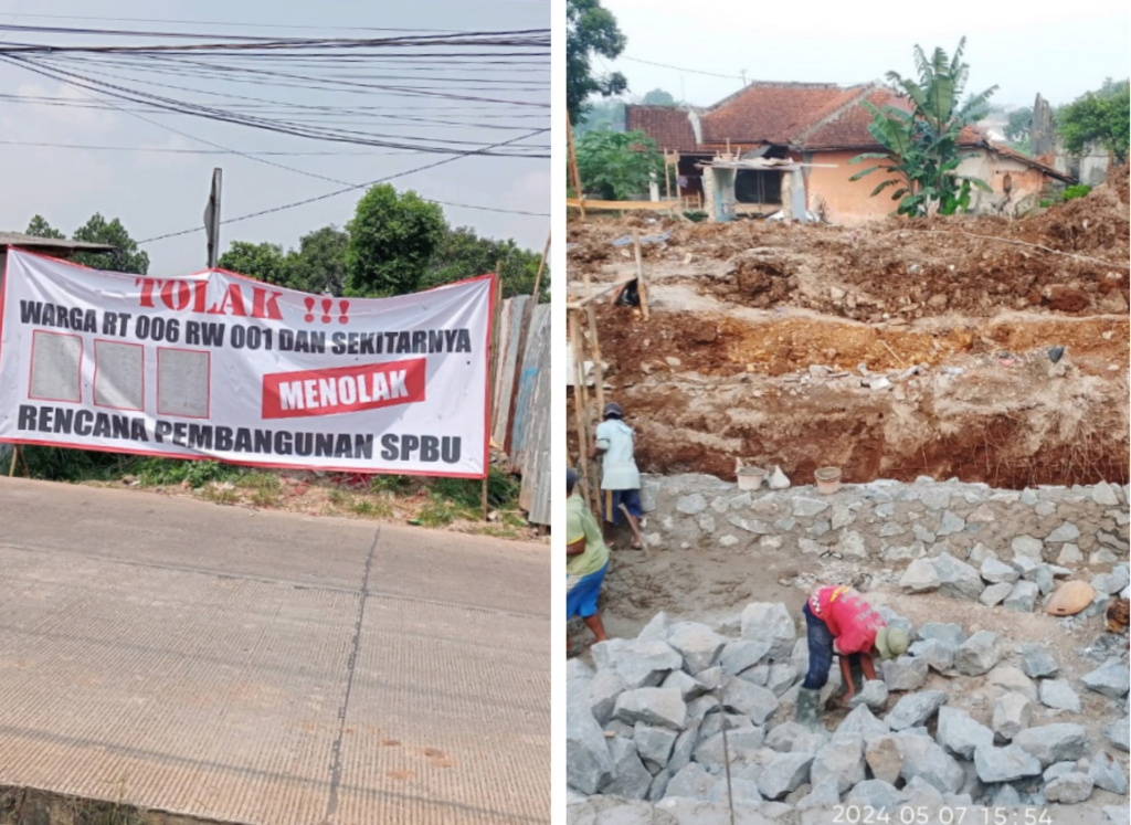 Akibatnya, masyarakat memasang spanduk penolakan dilokasi proyek pembangunan SPBU dilokasi pengerjaan, yang bertuliskan, “Warga Menolak SPBU”.