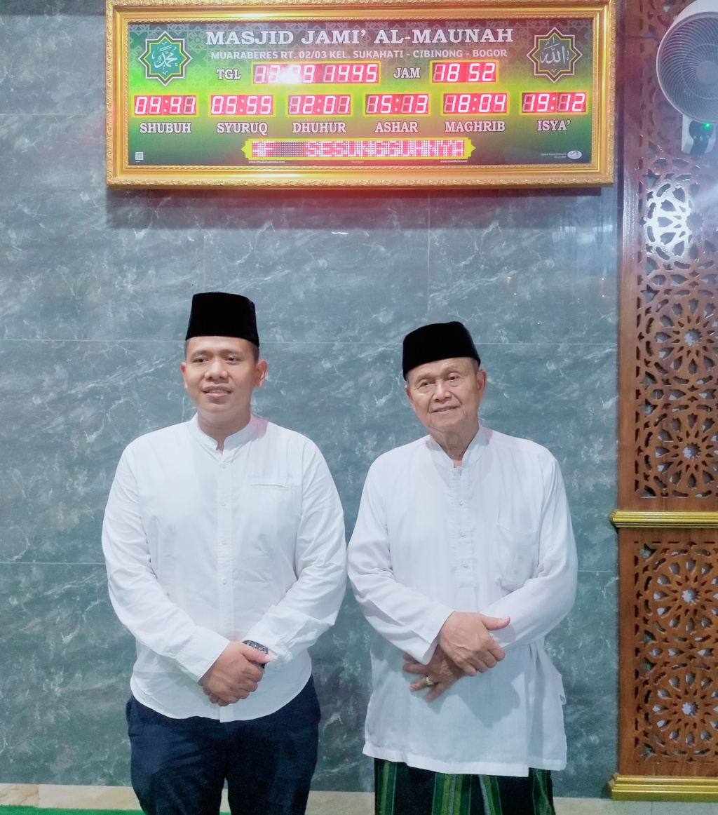 Kiri, Ketua MCM Indonesia Cabang Kabupaten Bogor, Rudi Harianto saat foto bersama dengan Ketua DKM Al-Maunah Sukahati, Kecamatan Cibinong, H. Kosim Mulyana. (Doc)